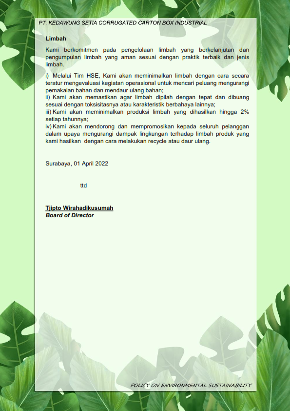 Sustainability Policy GHG EMISSIONS If you want to get the emission calculation table, please contact us Sustainability Policy